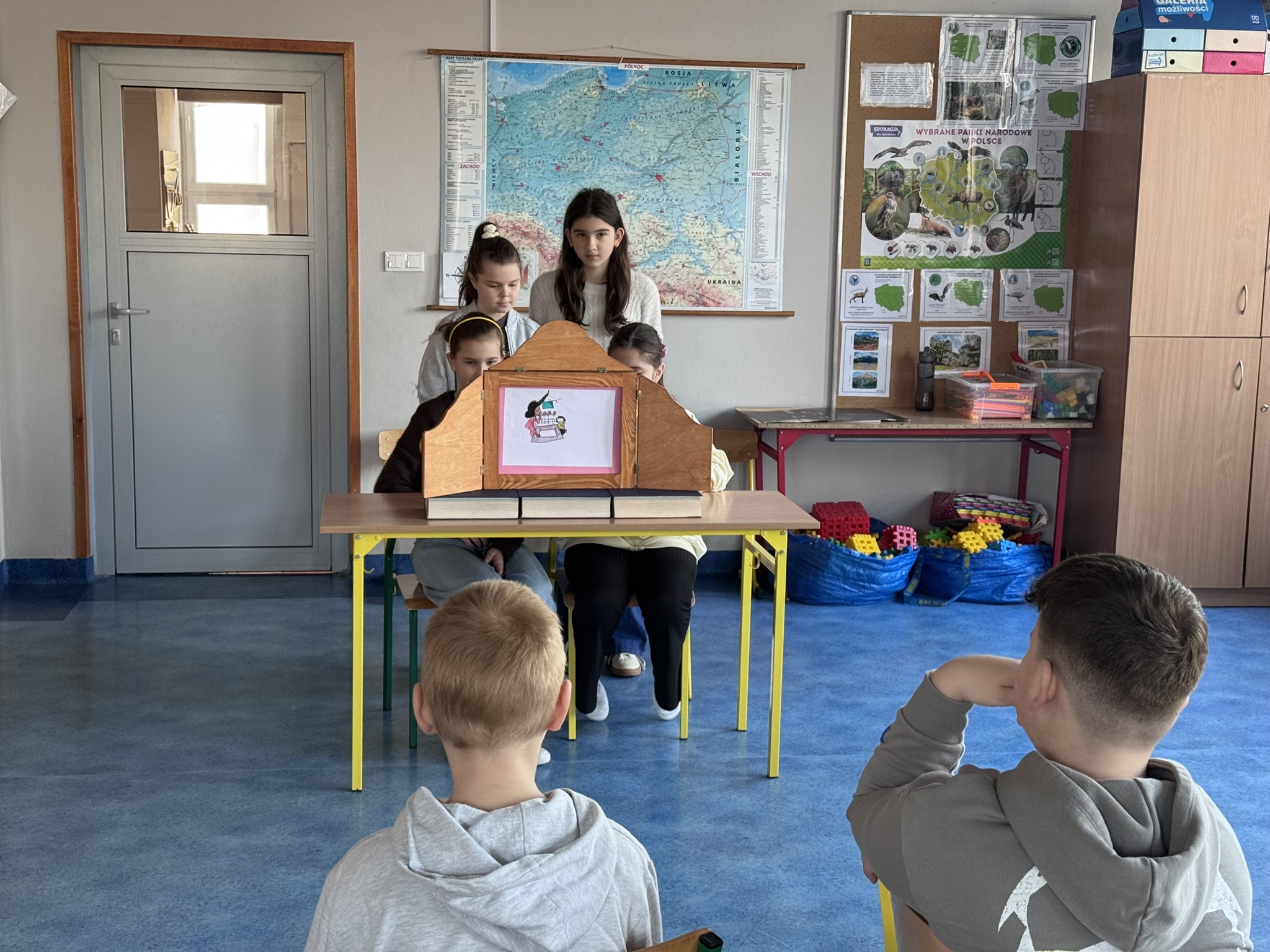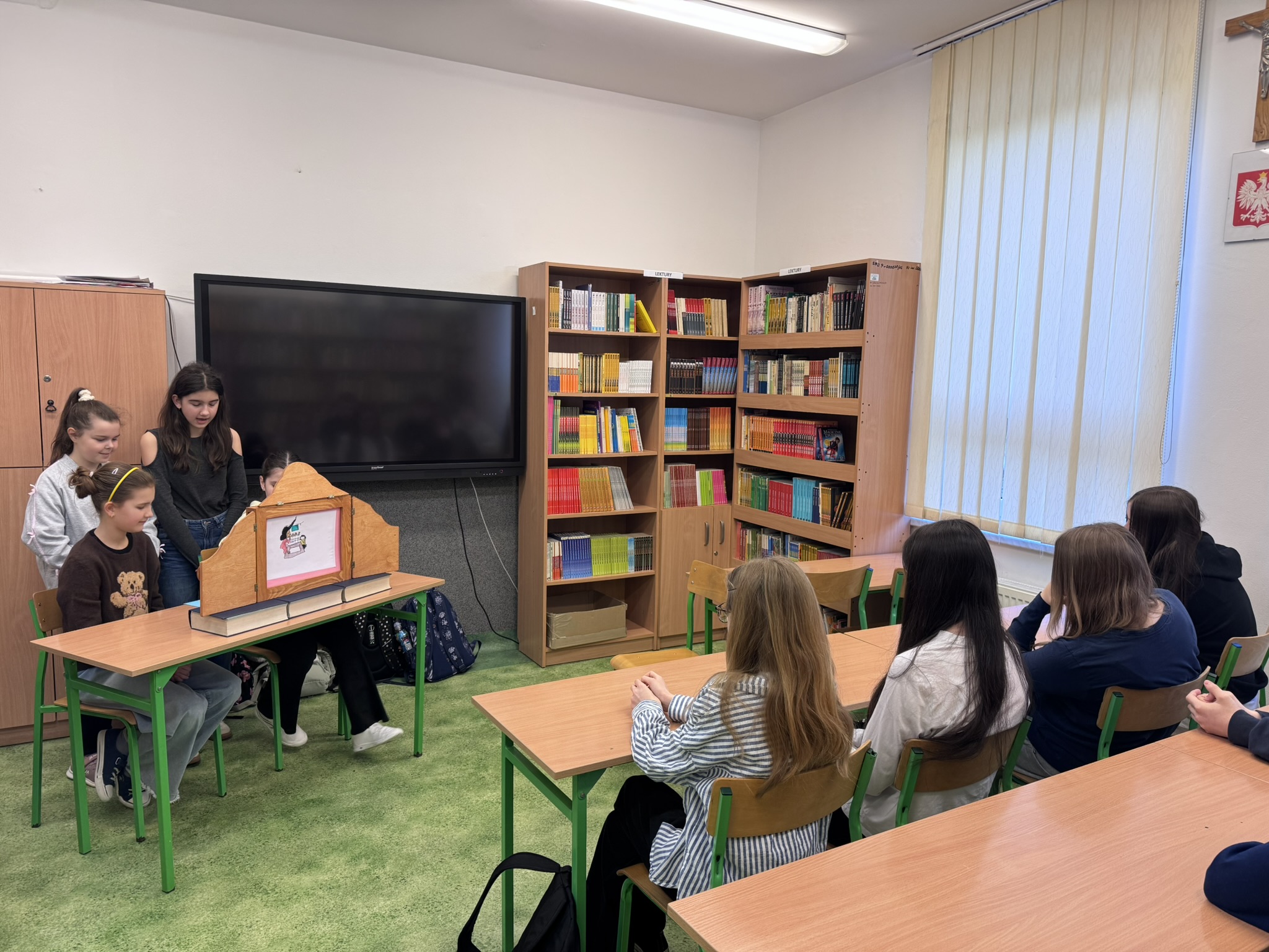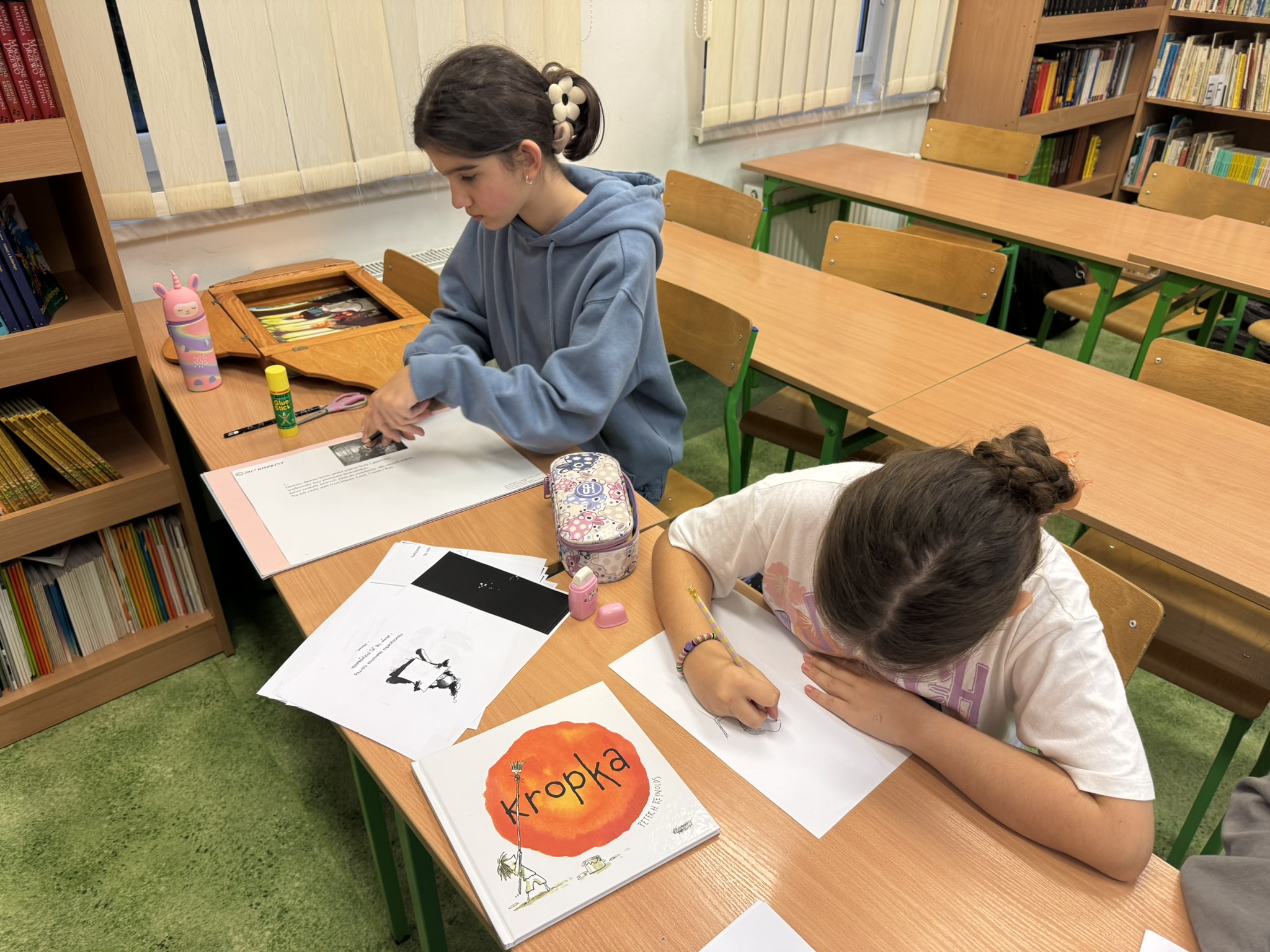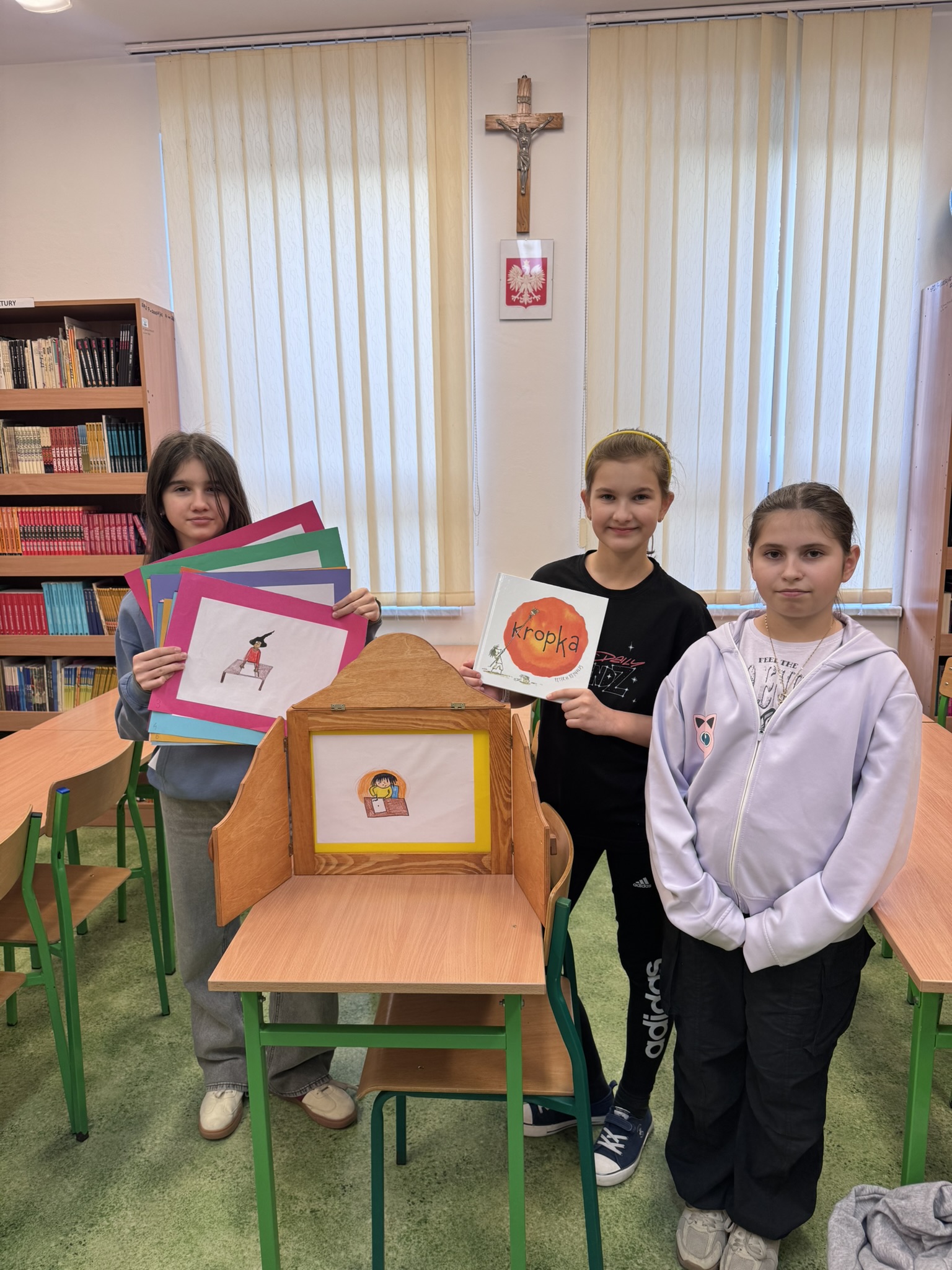 Stało się ono popularne i jest chętnie obchodzone w polskich przedszkolach i szkołach na przeróżne sposoby. W naszej szkole o Kropce i przesłaniu wynikającym z tej bajkowej opowieści uczniowie dowiedzieli się w tym roku nieco inaczej i w innym terminie. Uczennice z klasy 5 przez kilka tygodni na dodatkowych zajęciach przygotowywały plansze do teatrzyku kamishibai z treścią bajki i ilustracjami. Wszystko wykonały samodzielnie , a gdy bajka była gotowa zaprezentowały ją uczniom naszej szkoły. I zrobiły to po mistrzowsku ujawniając wiele swoich talentów.