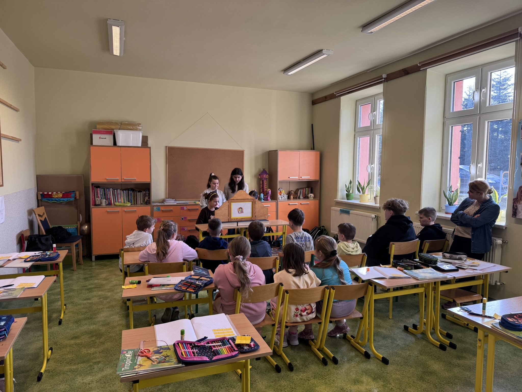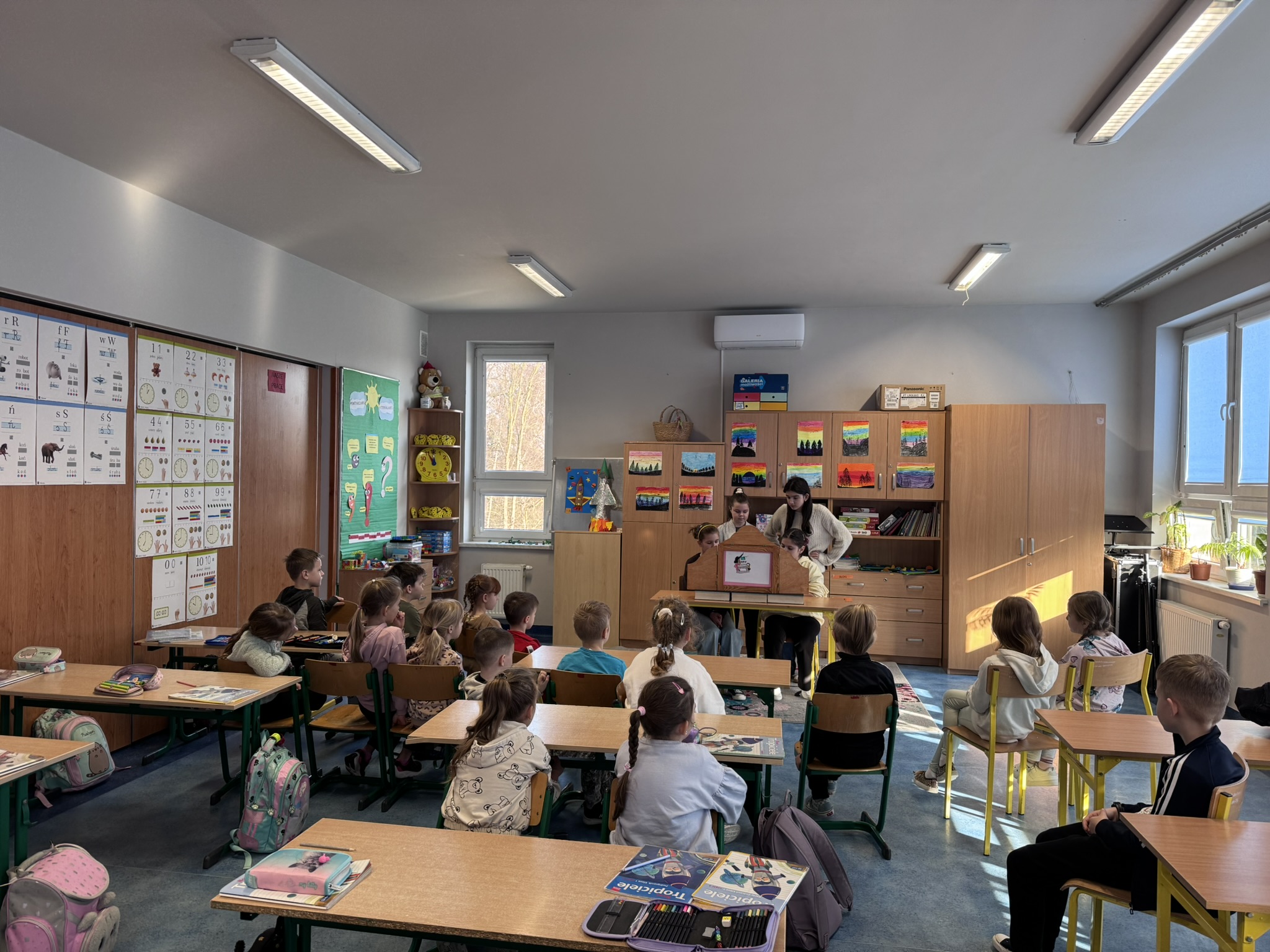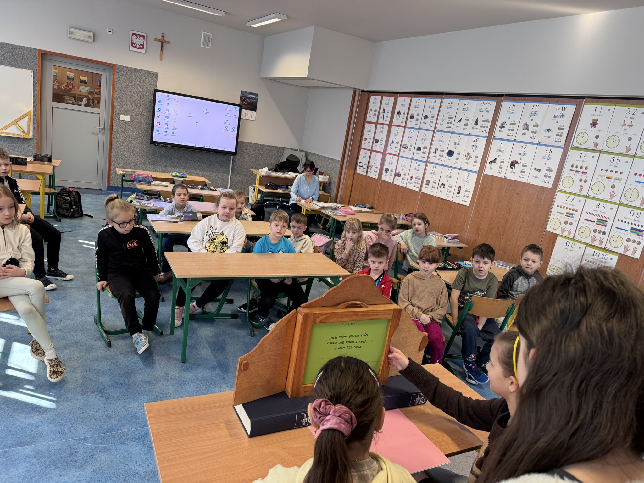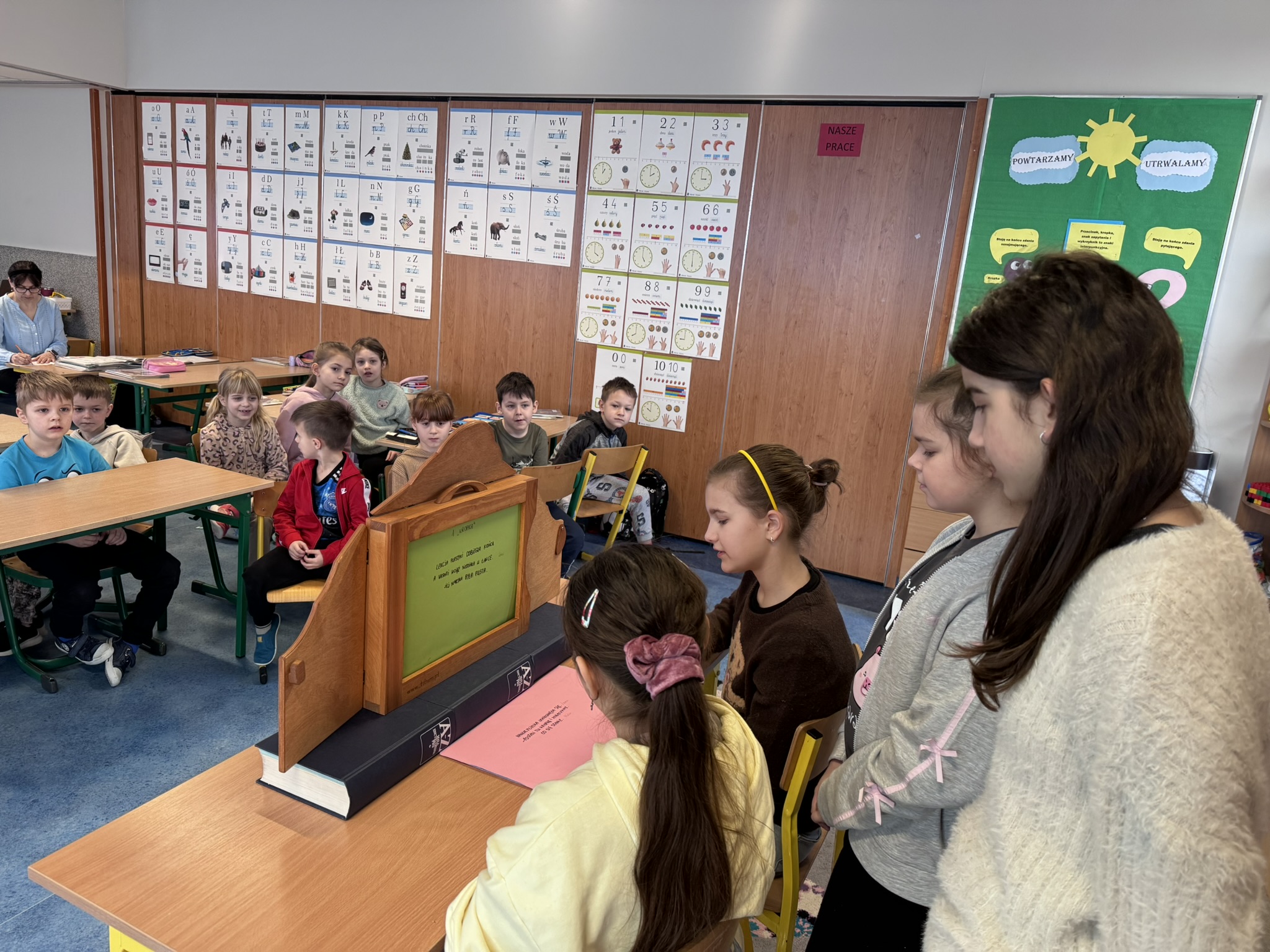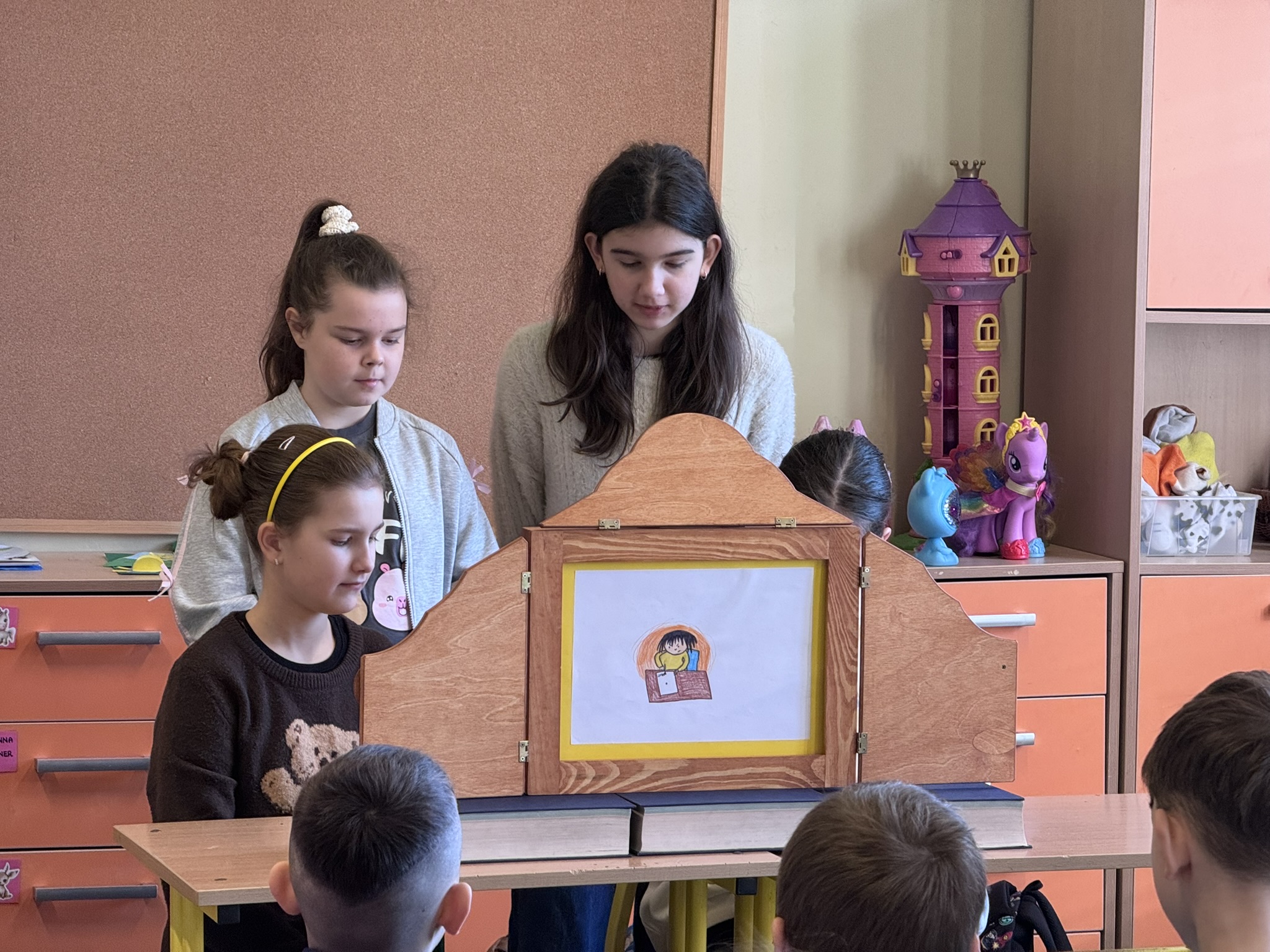 Stało się ono popularne i jest chętnie obchodzone w polskich przedszkolach i szkołach na przeróżne sposoby. W naszej szkole o Kropce i przesłaniu wynikającym z tej bajkowej opowieści uczniowie dowiedzieli się w tym roku nieco inaczej i w innym terminie. Uczennice z klasy 5 przez kilka tygodni na dodatkowych zajęciach przygotowywały plansze do teatrzyku kamishibai z treścią bajki i ilustracjami. Wszystko wykonały samodzielnie , a gdy bajka była gotowa zaprezentowały ją uczniom naszej szkoły. I zrobiły to po mistrzowsku ujawniając wiele swoich talentów.