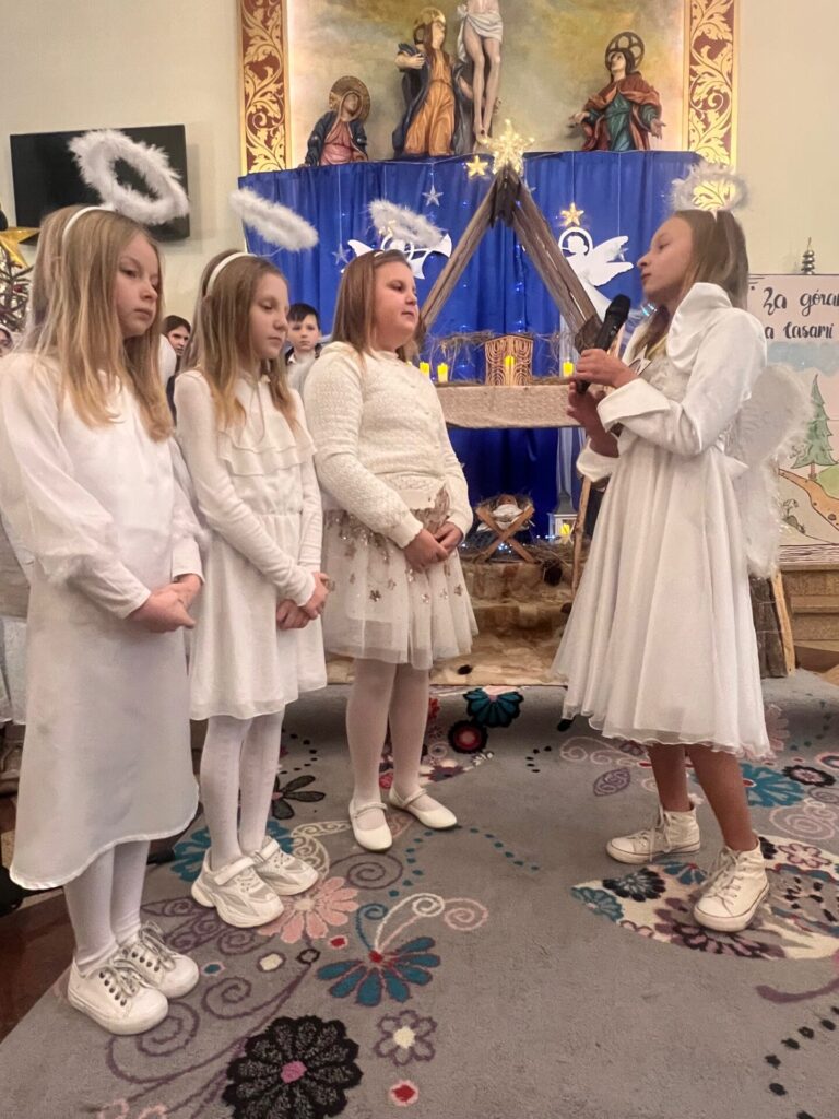 Sobotnie popołudnie 11 stycznia zgromadziło mieszkańców Jaśkowic w kościele parafialnym na tradycyjnych, corocznych jasełkach, przygotowanych przez społeczność Szkoły Podstawowej. Tegoroczne bożonarodzeniowe przedstawienie oprócz tradycyjnych postaci i świątecznego przesłania, do betlejemskiej szopki zaprosiło również bohaterów z najbardziej znanych bajek i baśni dziecięcych lat. Za pierwszą gwiazdą podążyli nie tylko przejęci pasterze i dostojni królowie, ale również leśne wróżki, Czerwony Kapturek, Dziewczynka z zapałkami i Sierotka Marysia, Smerfetka, Kubuś Puchatek i Pszczółka Maja, Kopciuszek i Królowa śniegu, której betlejemski cud stopił lód w sercu i pozwolił na nowo kochać, Calineczka z kwiatowych łąk oraz dzielni i odważni Piotr i Zuzanna z baśniowej Narnii. Pokłon przed Bożym Dzieciątkiem złożyły także przepiękne i rozśpiewane anioły. Jasełkom towarzyszył szkolny chór, który zaprezentował nastrojowe kolędy i skoczne pastorałki wykonane przy akompaniamencie dzwonków chromatycznych i fletów. Nie zabrakło również solowych występów świetnie przygotowanych uczennic z klas IV, VI i VII. Wszyscy występujący włożyli całe swoje serca w jak najlepsze zaprezentowanie ról i utworów muzycznych.