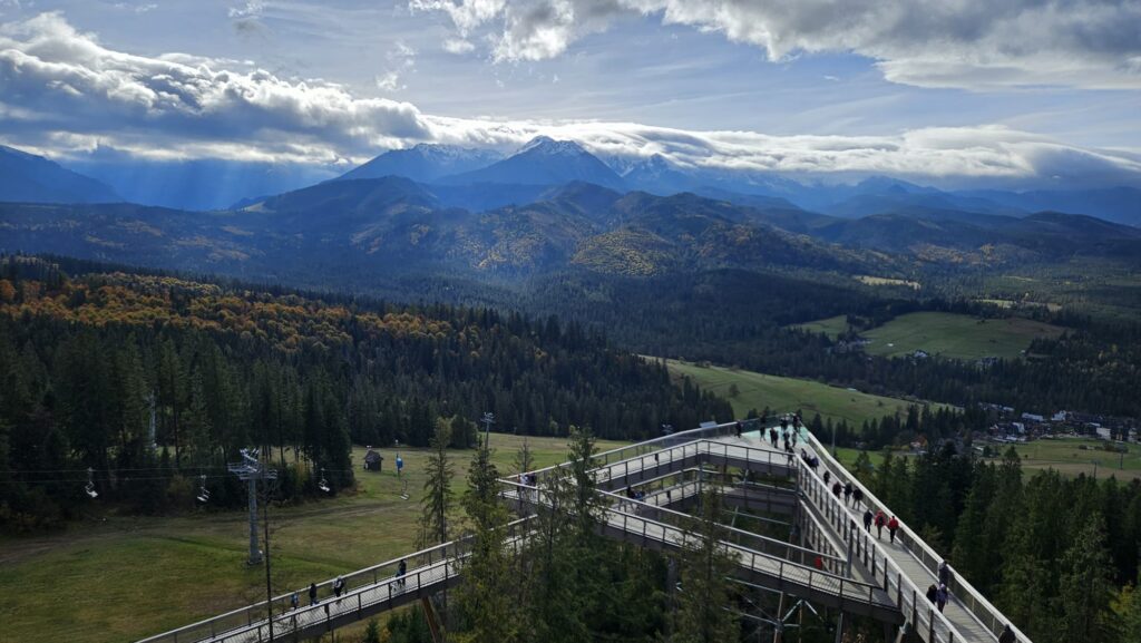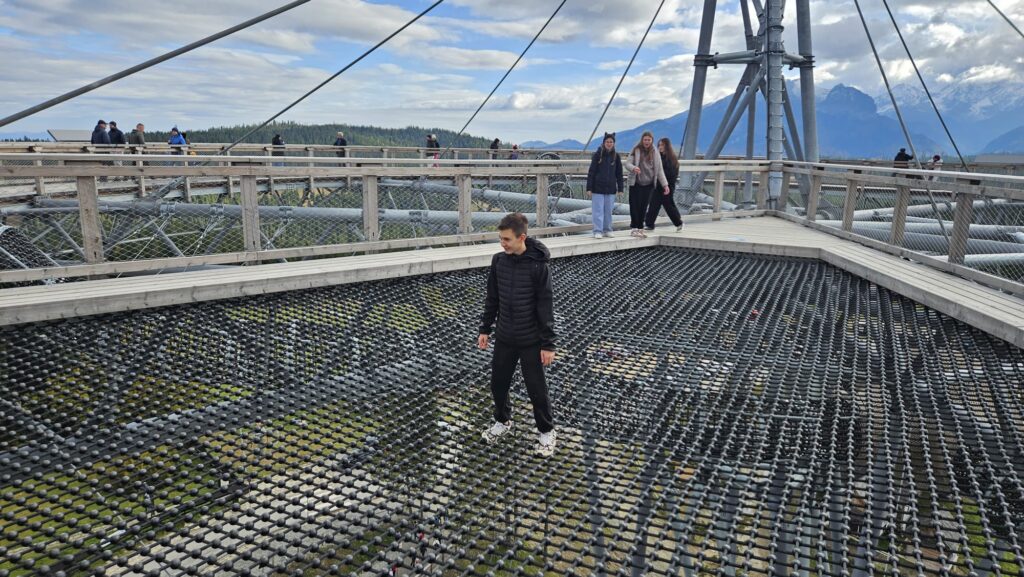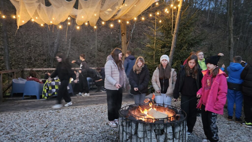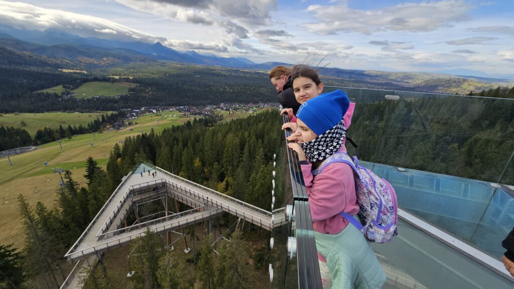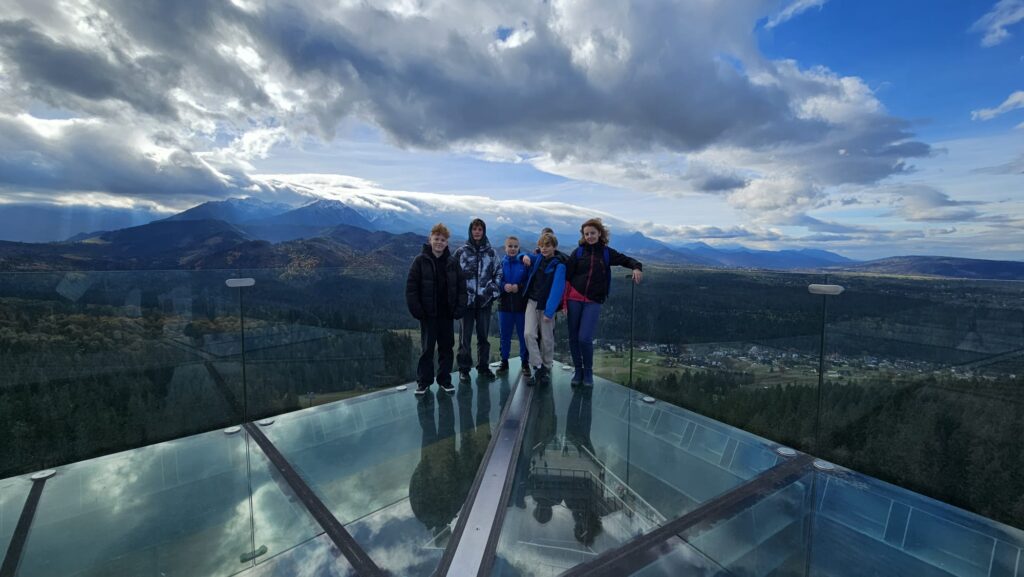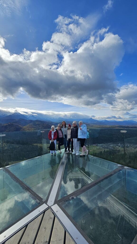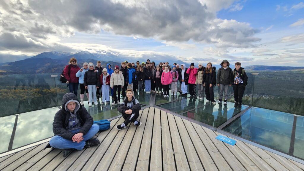 Prawdziwa, polska i złota jesień, zachęciła nas do podróży do podnóży polskich Tatr. Ciepłe dni i przyjemnie grzejące słońce to doskonała okazja do aktywności na świeżym powietrzu, połączonej z edukacją i dobrą zabawą. Uczniowie z klas IV – VIII, korzystając z sprzyjających warunków atmosferycznych biorą udział w trzydniowej wycieczce na Podhale. W pierwszym dniu wyprawy pokonywali swój lęk wysokości i przestrzeni spacerując po ścieżce w chmurach „Sky Walk” w Poroninie. Spacer okazał się niezapomnianym przeżyciem! Popołudnie upłynęło pod znakiem spacerów i sportowej aktywności na terenie ośrodka, w którym nocują uczniowie. Dzień pełen emocji, zakończył się wspólnym ogniskiem i pieczeniem kiełbasek. Czekamy na kolejną porcję wrażeń i wspomnień!
