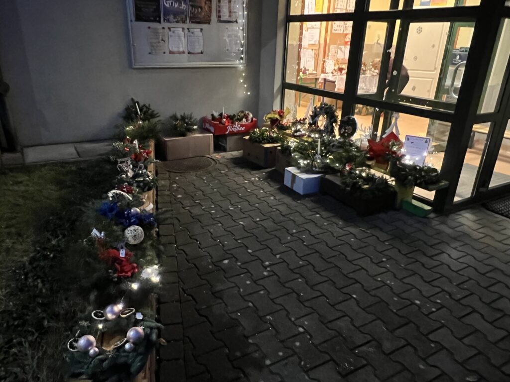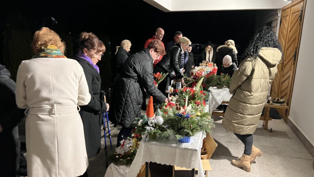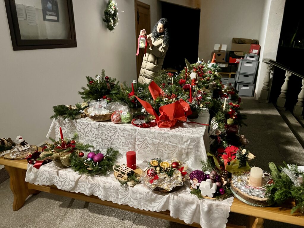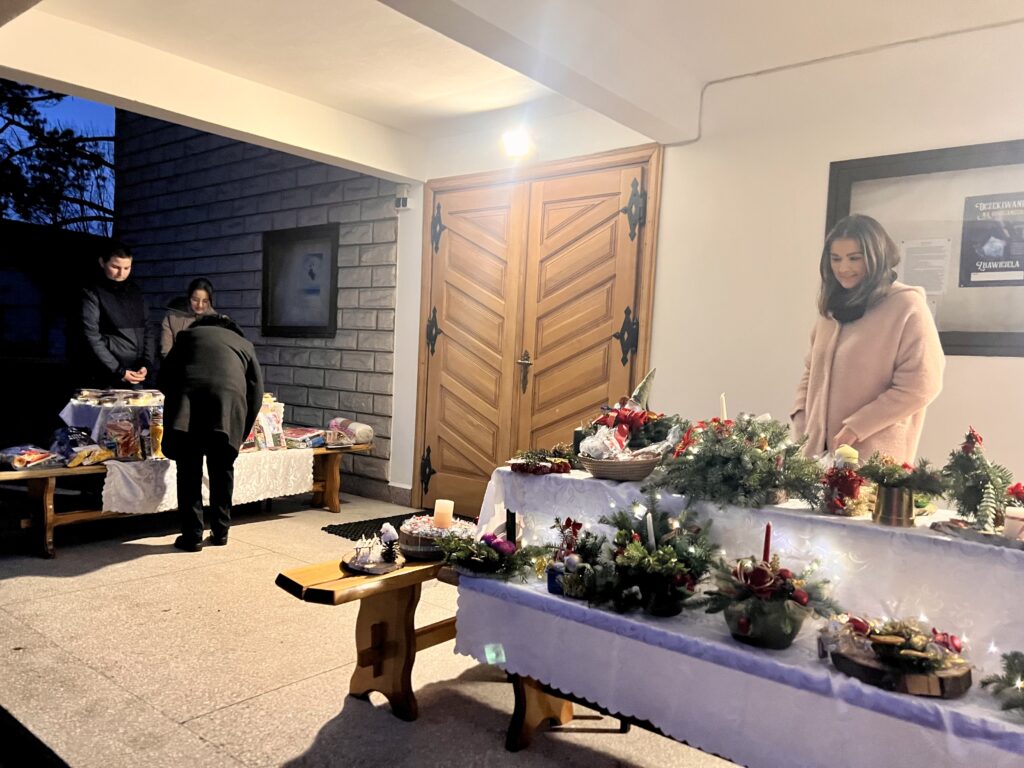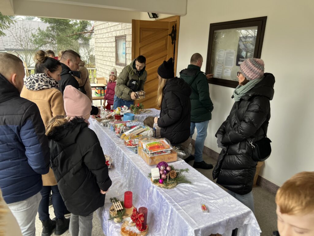 Następnie, w weekend 20 – 21 grudnia – tradycyjne stoisko kiermaszowe stanęło przy kościele. Feeria kolorów, światełek i ozdób oraz aromatyczne domowe ciasto dostępne w sprzedaży – niewątpliwie wprowadziły mieszkańców w  radosny czas oczekiwania na Boże Narodzenie i nieco zrekompensowała brak śniegu i zimowego klimatu.