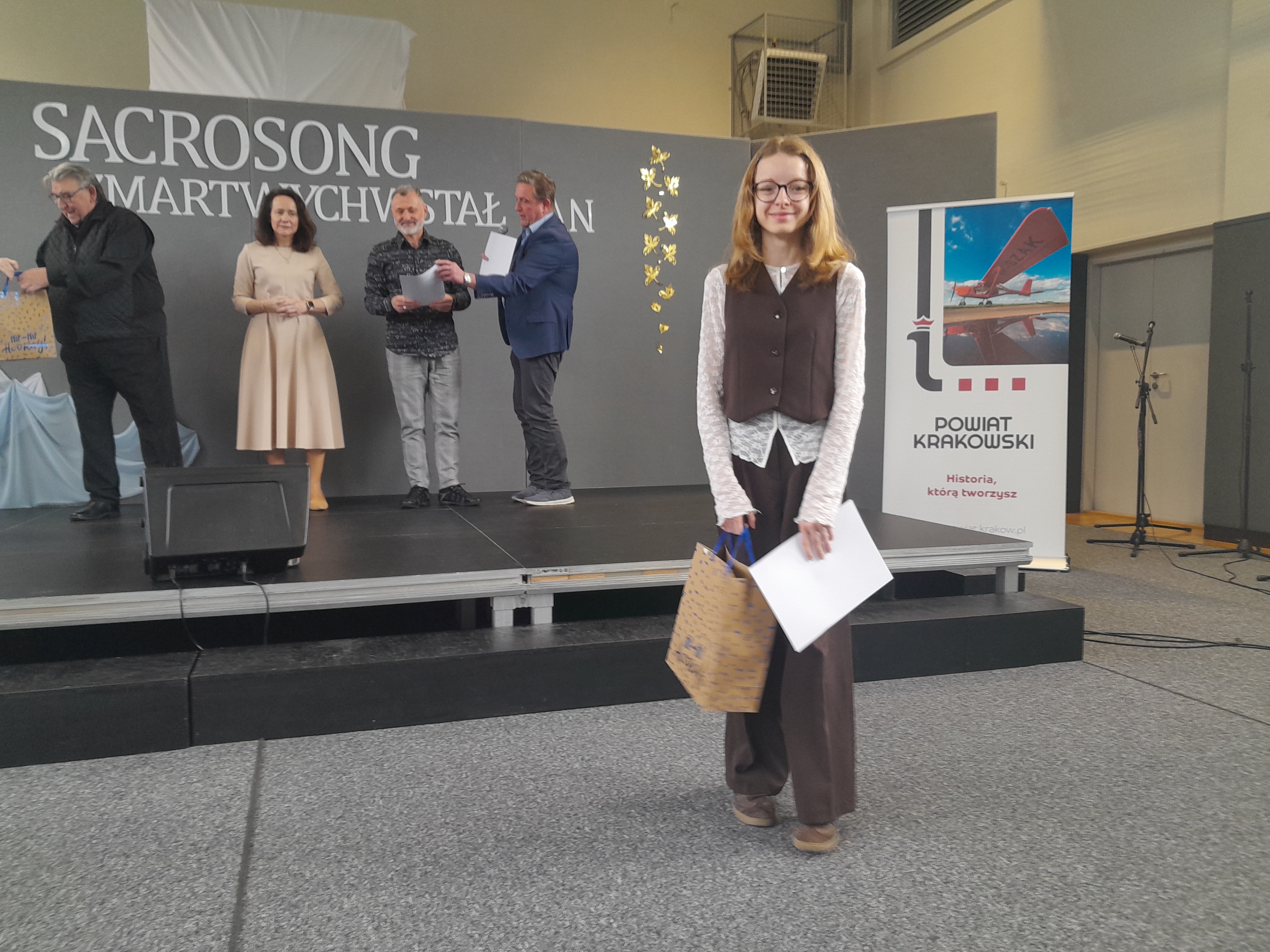 Z radością informujemy, że podczas XVI Gminnego Przeglądu Piosenki Religijnej SACROSONG 2026, który odbył się 17 kwietnia 2026 roku wZespole Katolickich Szkół im. Jana Pawła II w Skawinie, naszą szkołę godnie reprezentowała Lena Machaczka z klasy 7. Uczennica wykonała dwa utwory muzyczne „Oto są baranki młode” i „Alleluja”. Za swój piękny występ Lena zdobyła wyróżnienie, co jest kolejnym dowodem jej talentu oraz muzycznej wrażliwości oraz niezwykłego talentu.