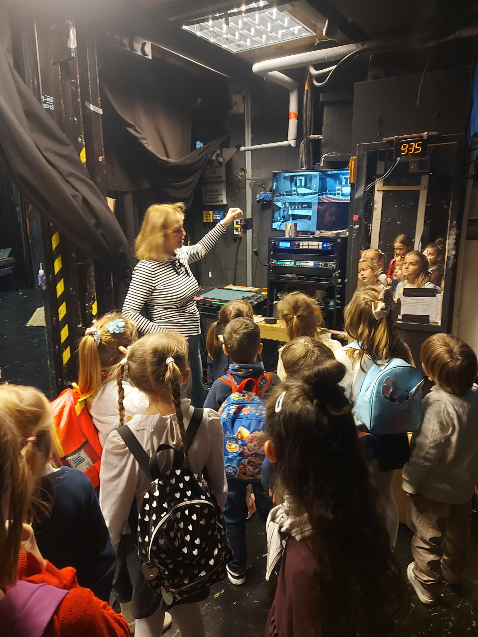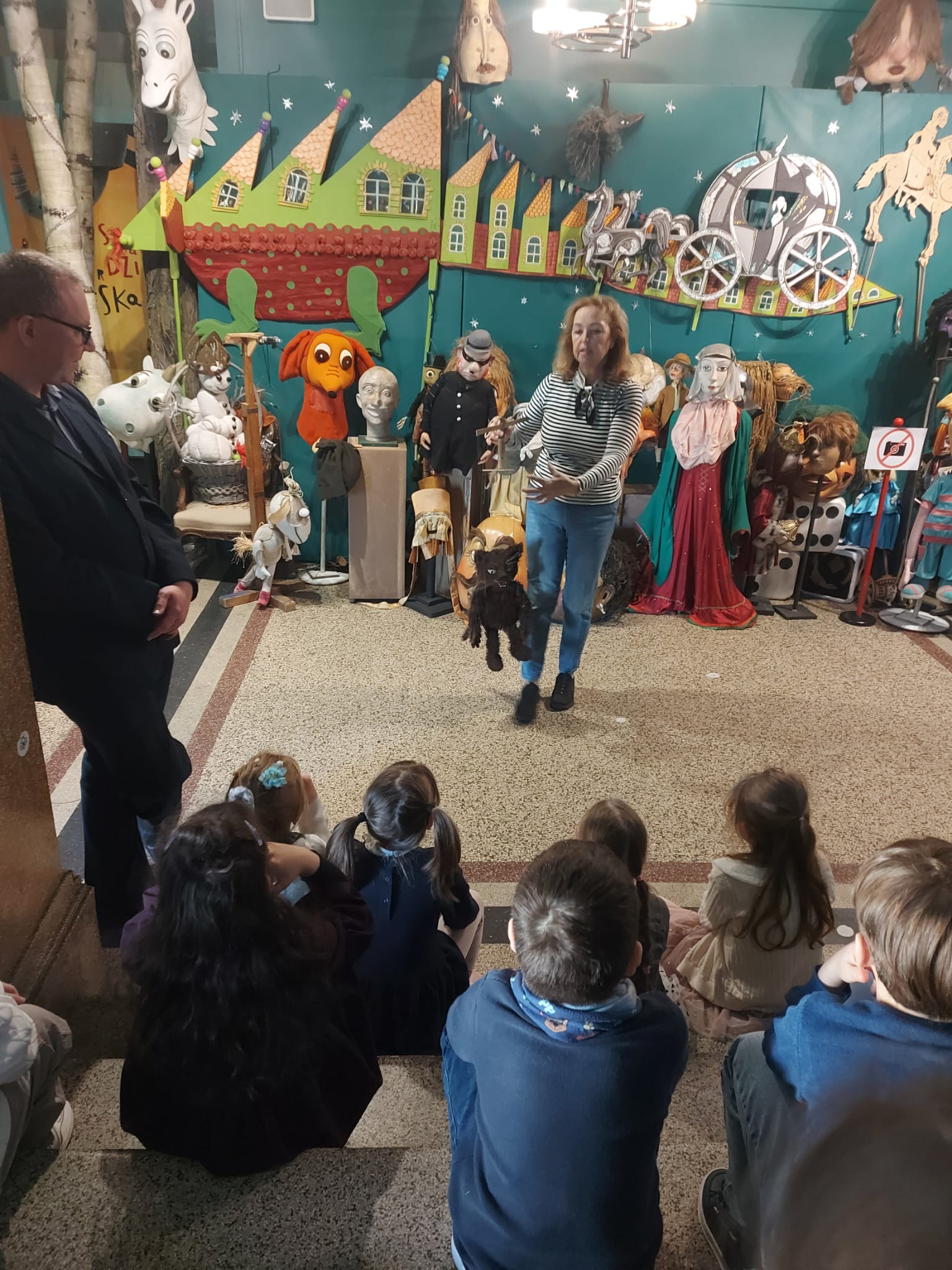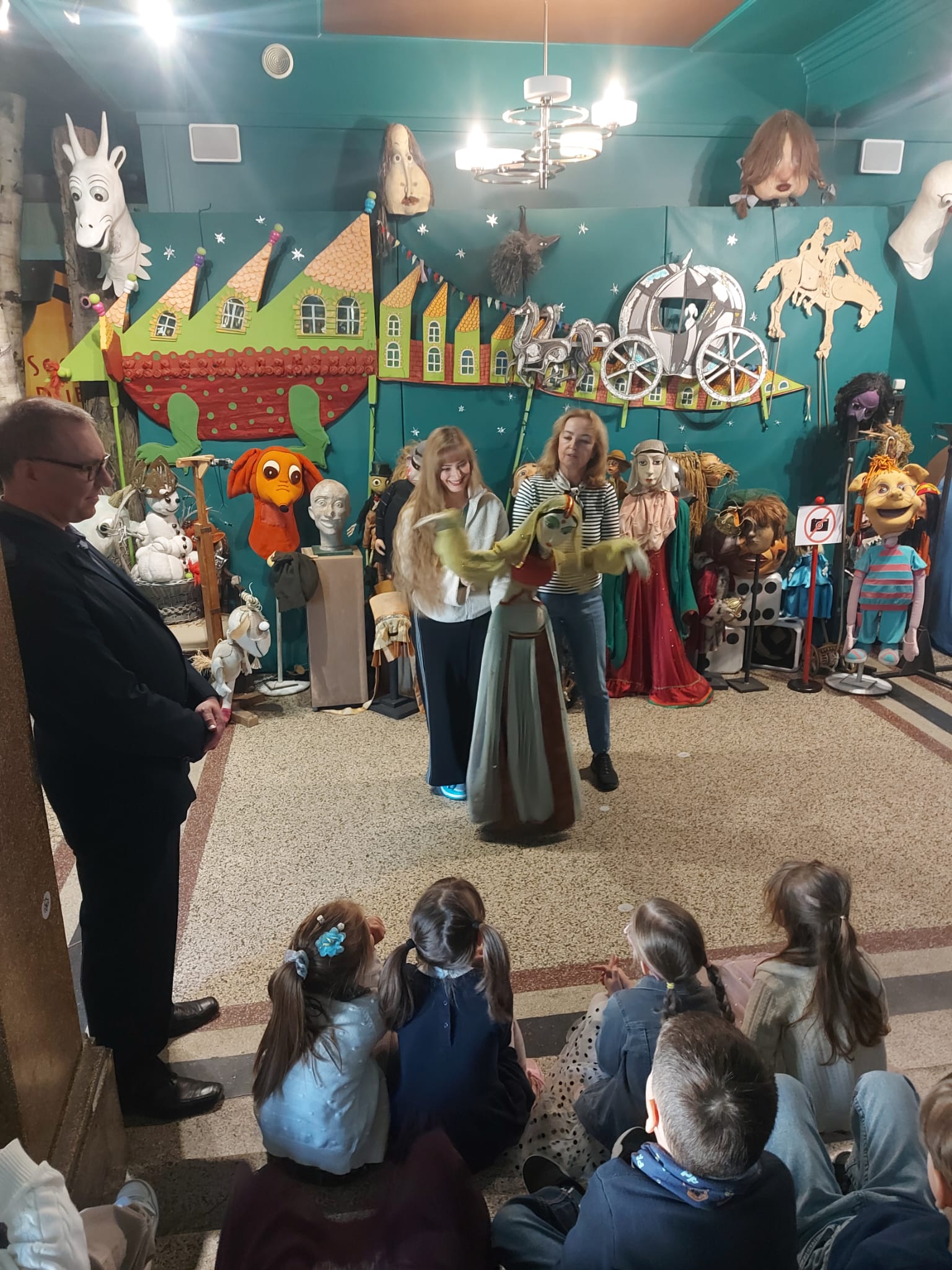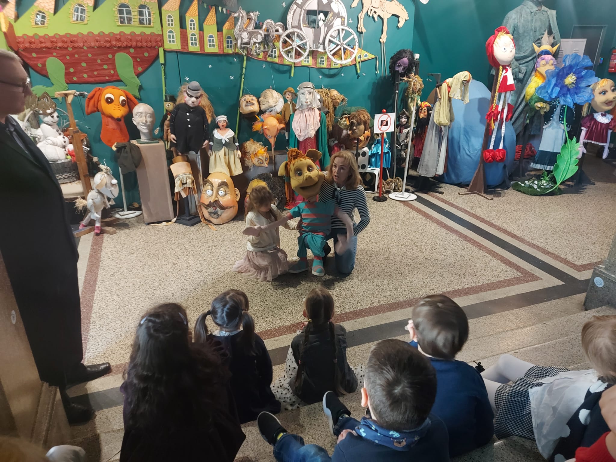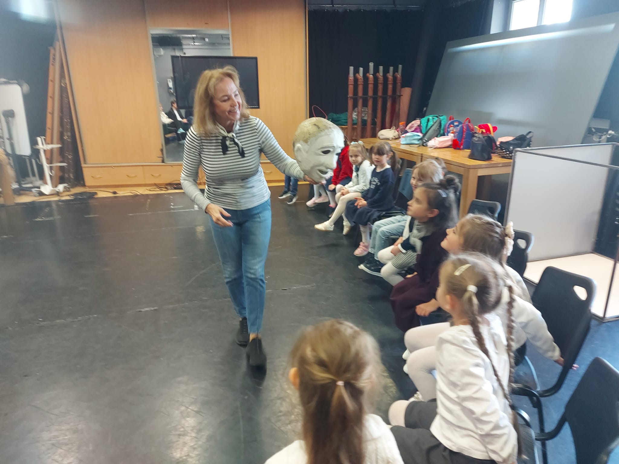 22 kwietnia najmłodsi członkowie szkolnej społeczności wybrali się z wizytą do Teatru Groteska. Przedszkolaki wzięły udział w warsztatach teatralnych, podczas których zwiedziły miejsca w teatrze, które na co dzień są niedostępne dla widzów. Pani Ilona, która w tym dniu była przewodnikiem grupy, ciekawie i przystępnie opowiedziała o pracy w teatrze i o tym, za co są odpowiedzialne osoby w nim zatrudnione. A zadań jest mnóstwo i są one bardzo odpowiedzialne. Praca każdej osoby składa się na sceniczny sukces przedstawienia. Dzieci obejrzały również różnorodne lalki i maski, a niektóre z nich mogły przymierzyć i przez chwilę poczuć się, jak teatralni aktorzy. Warsztaty zakończyło przedstawienie zatytułowane „Nie płacz Koziołku”. Przygody niepokornego i nieposłusznego Koziołka, który nie chciał słuchać swojej mamy i podczas groźnej burzy oddalił się od domu, bardzo zainteresowały małych widzów. Koziołek szybko wpadł w poważne kłopoty, ale na pomoc uparciuchowi pospieszyły inne zwierzątka, które uratowały go od zjedzenia przez wilki. Historia krnąbrnego Koziołka to opowiadanie z morałem o tym, jakie mogą być konsekwencje nieposłuszeństwa i niemądrych decyzji, o sile rodzinnych więzi, przyjaźni i wrażliwości na potrzeby innych. Bajka okazała się również doskonałą okazją do utrwalania zasad bezpieczeństwa w przestrzeni publicznej oraz kulturalnego zachowania w instytucjach kultury i sztuki. Przedszkolaki wróciły do szkoły nie tylko bardzo zadowolone z tak mile spędzonego dnia, ale przede wszystkim bogatsze o nowe doświadczenia.