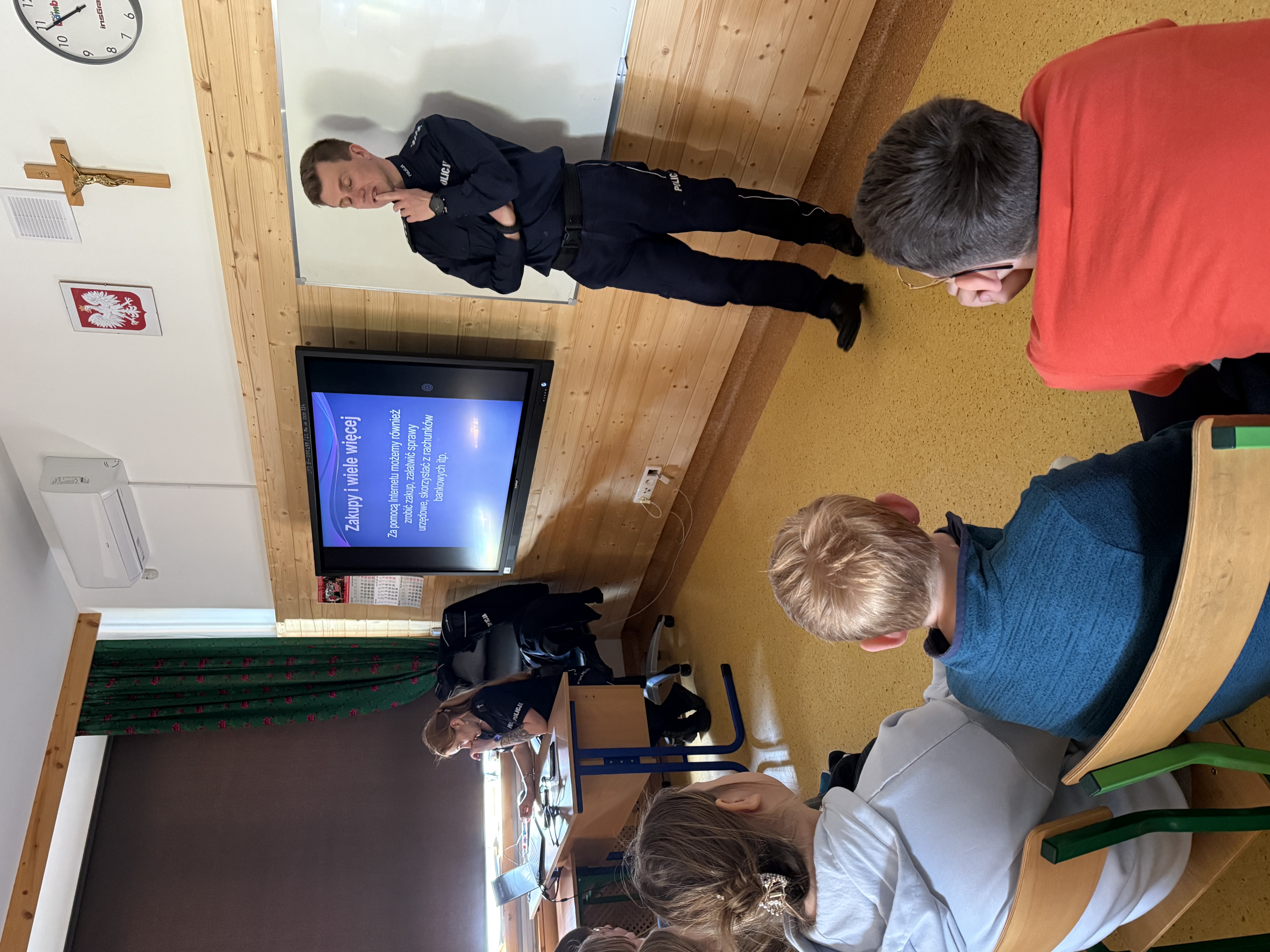 24 kwietnia uczniowie starszych klas wzięli udział w spotkaniu profilaktycznym z przedstawicielami skawińskiego Komisariatu Policji. Podczas warsztatów, podzielonych na dwa bloki tematyczne – „Bezpieczeństwo w Internecie” dla klas IV – VI oraz „Odpowiedzialność prawna za czyny zabronione” dla klas VII – VIII, funkcjonariusze aspirant Angelika Górka i starszy aspirant Grzegorz Hucisko, szczegółowo i przystępnie omówili zagadnienia związane z odpowiedzialnością dzieci i młodzieży za popełnione czyny. W młodszej grupie uczniów poruszono ważne zagadnienia związane z właściwym korzystaniem z przestrzeni internetowej, posługiwania się danymi osobowymi oraz naruszeniem godności innych np. poprzez cyberhejt. W starszej grupie, funkcjonariusze opowiedzieli o odpowiedzialności prawnej nastolatków za czynności związane z rozbojem, przemocą rówieśniczą, udostępnianiem i korzystaniem z treści niewłaściwych dla osób małoletnich. W obu grupach funkcjonariusze przypomnieli i zaktualizowali przepisy dotyczące poruszania się hulajnogami i rowerami w różnych obszarach ruchu drogowego. Spotkanie umożliwiło kształtowanie właściwych postaw, zgodnych z regułami prawa karnego, odpowiedzialności za popełniane czyny oraz bezpiecznego korzystania z Internetu.