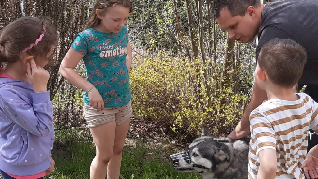 Przedszkolaki bardzo lubią zajęcia przyrodnicze i wykazują szerokie zainteresowania różnymi zwierzętami. Tym razem wzięły udział w spotkaniu ze zwierzętami domowymi, które przyprowadzili lub przynieśli ich rodzice. Były zatem puchate kurczątka, gołębie, króliki i całkiem przyjazny piękny pies husky. Dzieci z niezwykłą delikatnością dotykały wszystkich zwierzęcych gości, dbając o to, aby nikomu nie stała się krzywda. Zajęcia te pozwoliły rozwijać nie tylko ciekawość światem i poszerzać zainteresowania przyrodnicze, ale przede wszystkim kształtować w najmłodszych wrażliwość, empatię i odpowiedzialność za domowego pupila. Serdecznie dziękujemy rodzicom, którzy zaangażowali się w przygotowanie zajęć!