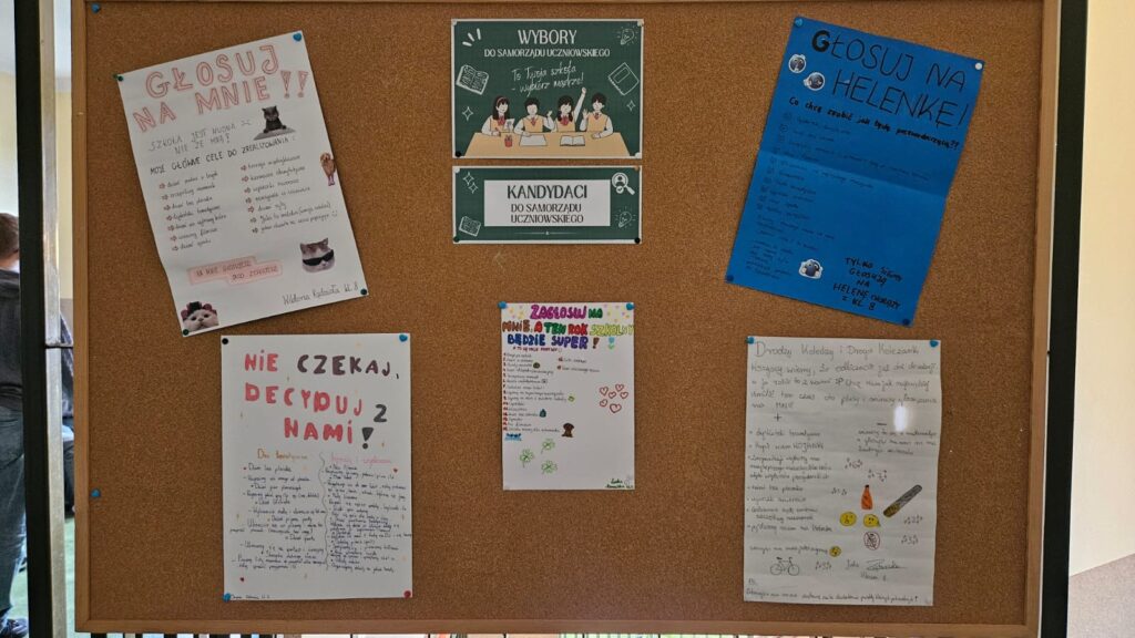 Na początku października w naszej szkole odbyły się wybory do Samorządu Uczniowskiego. Kandydatki ubiegające się o funkcję w samorządzie, przedstawiły swój program wyborczy, zamieszczając na gazetce szkolnej plakaty ze swoimi pomysłami. Nie zabrakło chwytliwych postulatów, takich jak: „wielki quiz szkolny”, „dyskoteki” czy „turnieje międzyklasowe”. Gdy nadszedł dzień wyborów, uczniowie klas 4-8 mogli wreszcie oddać głos na swojego kandydata. Uprawnionych do głosowania było 55 uczniów, a nad prawidłowym przebiegiem czuwała komisja wyborcza w składzie: Anna Sobaszek, Filip Ustupski i Adam Knapik oraz opiekun SU, pani Katarzyna Kozłowska. To na nich spoczywała odpowiedzialność za zachowanie tajności głosowania oraz liczenie głosów po jego zakończeniu. I tak, wkrótce stało się jasne, że głosami szkolnych wyborców Przewodniczącą Szkoły Podstawowej w Jaśkowicach została uczennica klasy VIII, Wiktoria, a zastępcą koleżanka z klasy – Helenka. Pozostałe trzy kandydatki – Julia, Lena i Jagoda również weszły w skład samorządu.